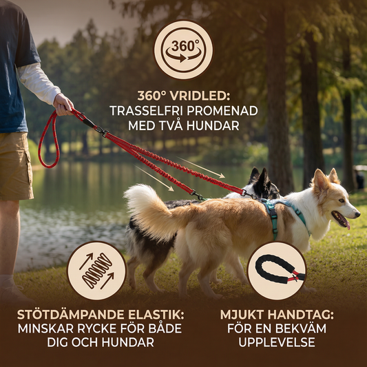 2-i-1 hunddubbellina med 360° vridled – Trasselfri & stötdämpande