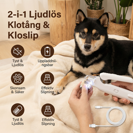 2-i-1 Ljudlös klotång och kloslip för hundar – tyst, uppladdningsbar och skonsam