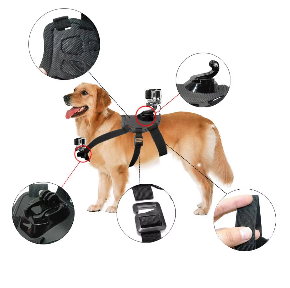 Actionkamerasele för hundar med hållare för bröst och rygg