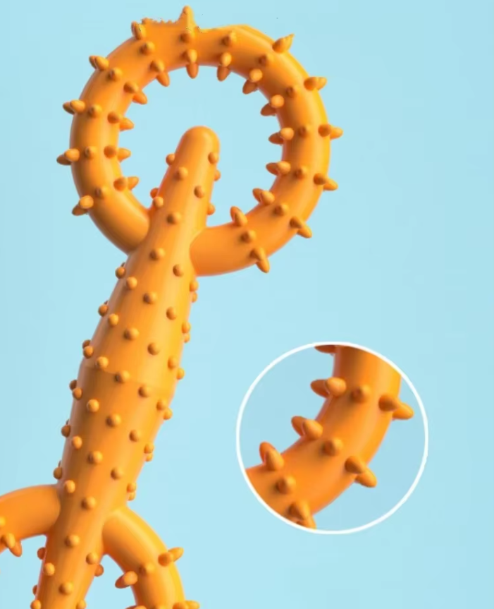 - 🦷 Främjar tandhälsa: De mjuka knölarna rengör tänderna, minskar bildandet av tandsten och masserar tandköttet försiktigt.