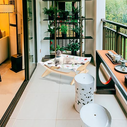 Denna kattbädd löser problemet med obekväma och instabila viloplatser. Med sin stabila träram och mjuka överdrag erbjuder den din katt en säker och bekväm plats att koppla av på. Den färgglada designen passar i alla moderna hem och skapar samtidigt en trivsam atmosfär för ditt husdjur.