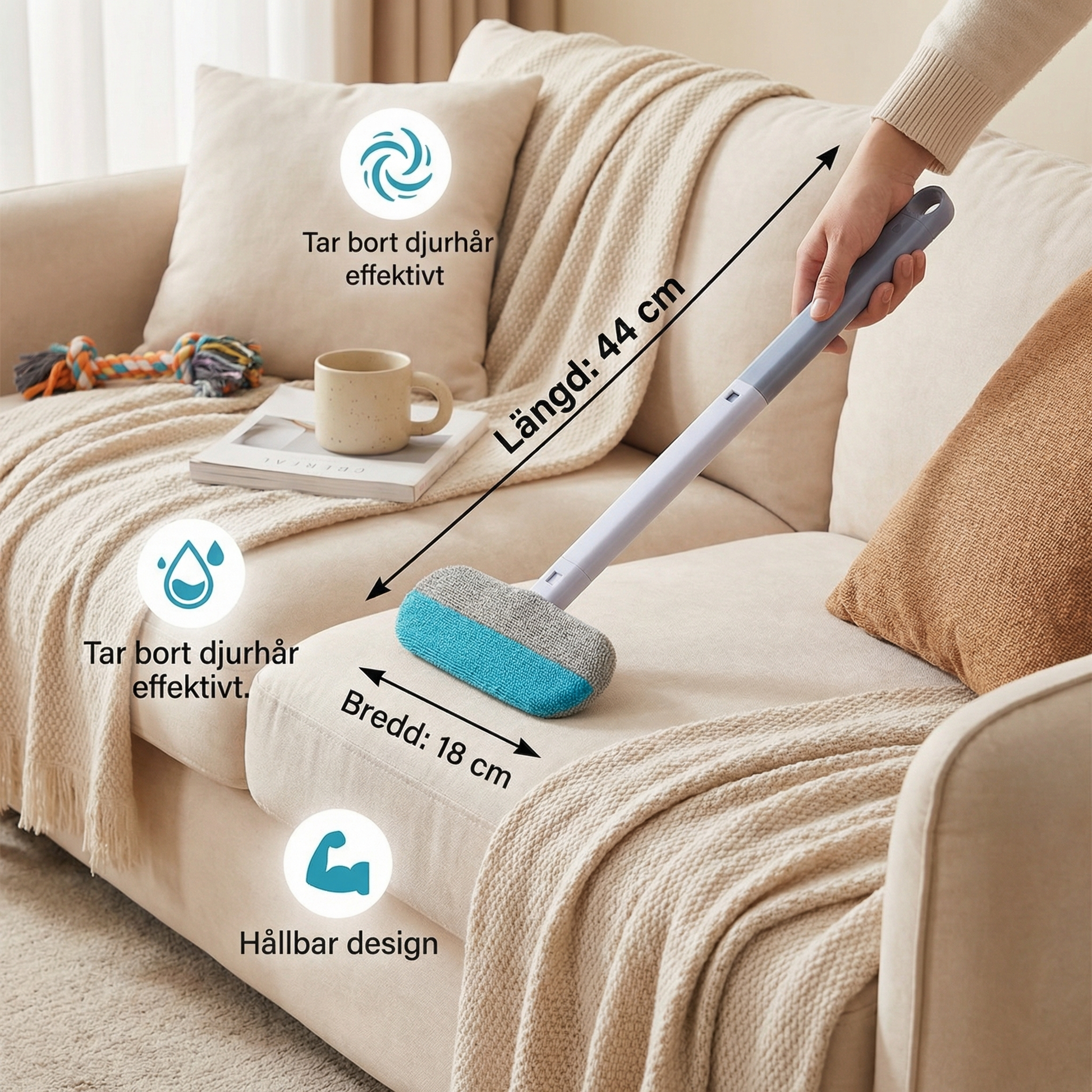 🧼 Effektiv hårborttagning: Tar enkelt bort husdjursbens hår från alla ytor – från soffan till bilsätet.